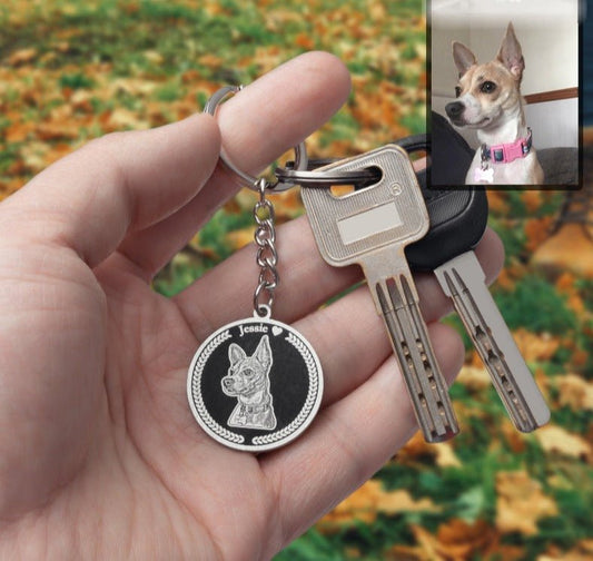 Στρογγυλό δαχτυλίδι κλειδιών με μενταγιόν σιλουέτα σκύλου